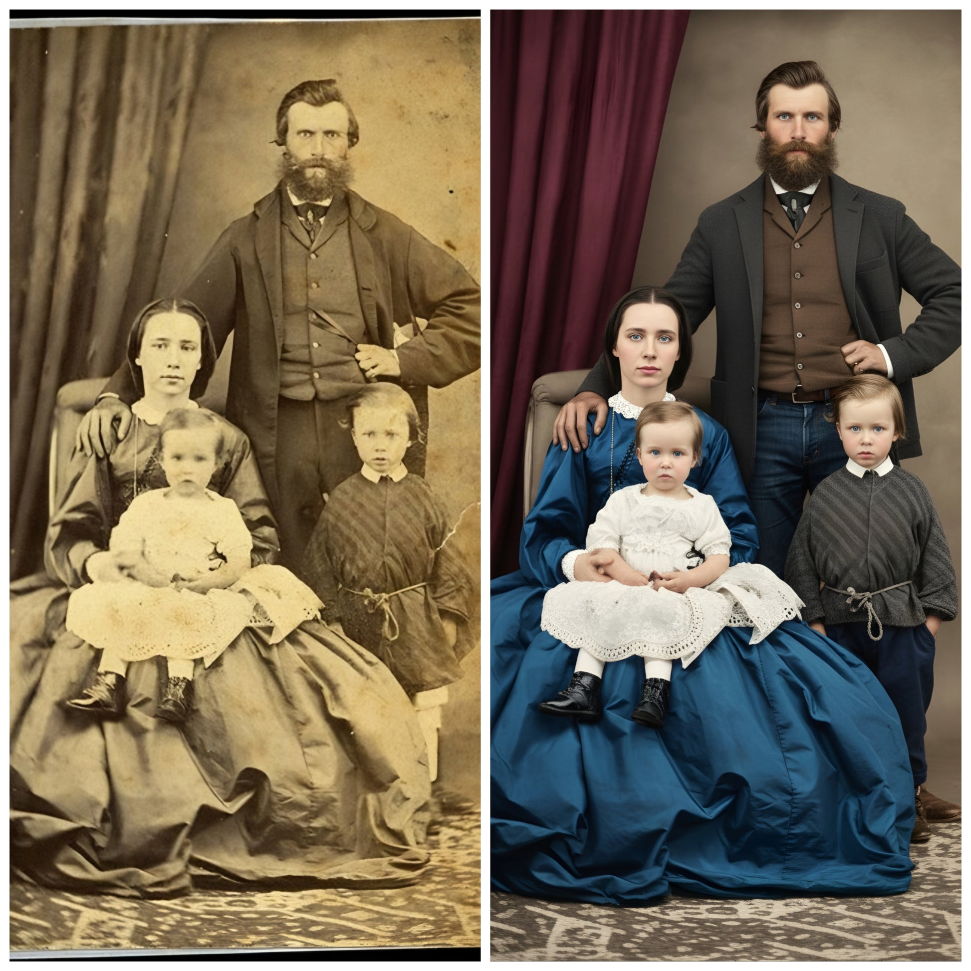 Timeless Restorations & Styles: That cherished moment, frozen in time, is ready to be re-experienced. We correct scratches, tears, and fading, and then expertly transform black-and-white or sepia images into vibrant, beautifully colorized digital photos. Whether it is a single portrait or a group photo, we restore them to their highest quality digital state.